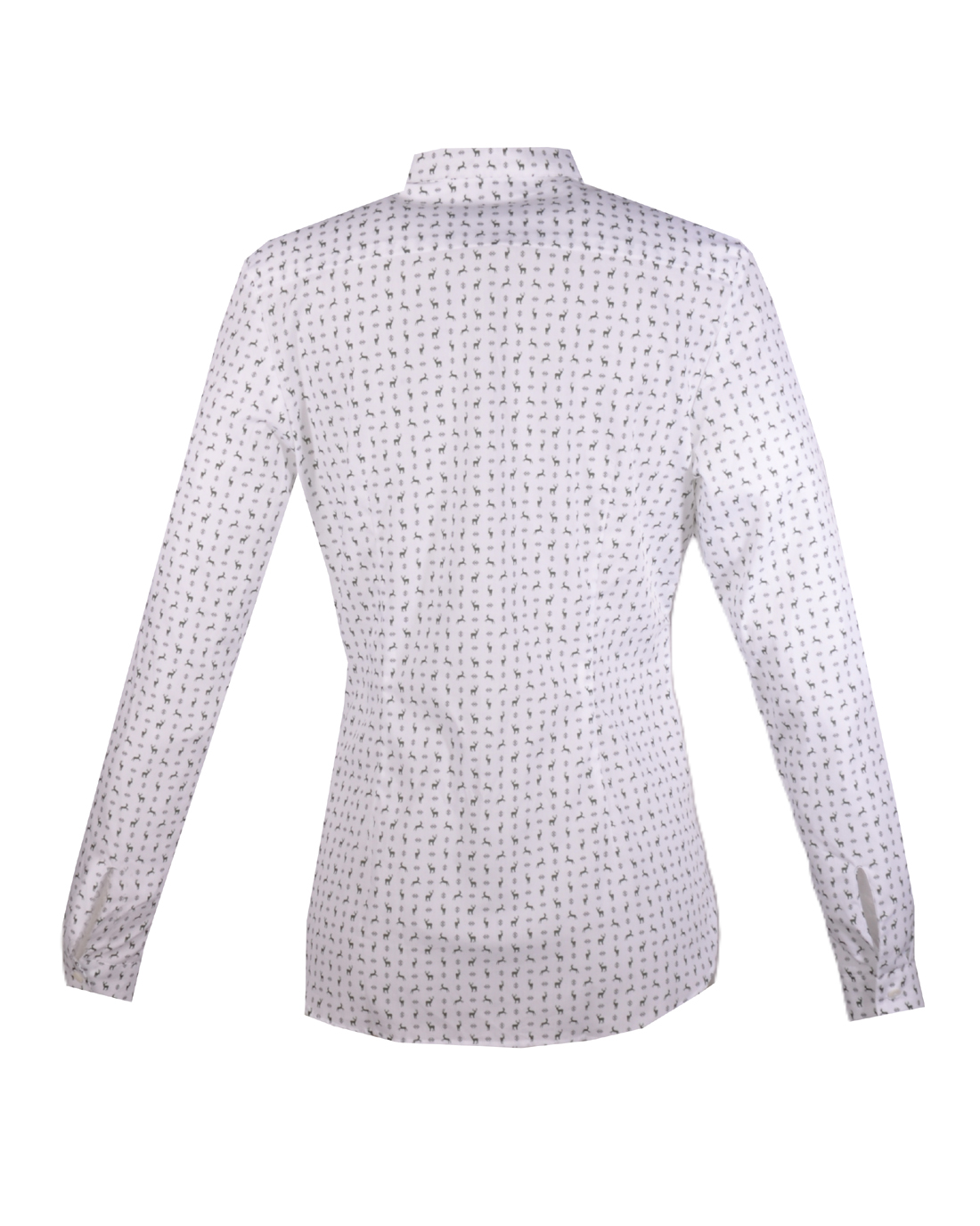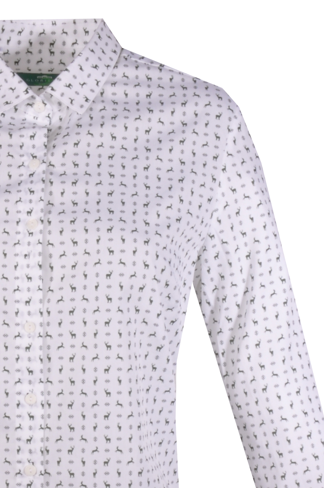 Hochwertige Trachtenbluse in weiß / grün aus dem Hause Goloriette Fashion. Die Damenbluse mit einem Hirschmuster in grün lässt sich super zur Tracht oder auch leger zur Jeans kombinieren. Hübsche Knöpfe setzen Akzente. Durch die 100% Baumwolle ist diese langärmelige Bluse super zu tragen.