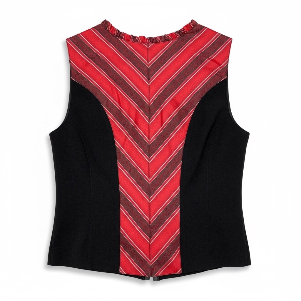 In Kürze: Trachtenmieder, Krüger Manufaktur, Farbe: schwarz / rot, Rüschen, Reißverschluss, Metall-Schließe