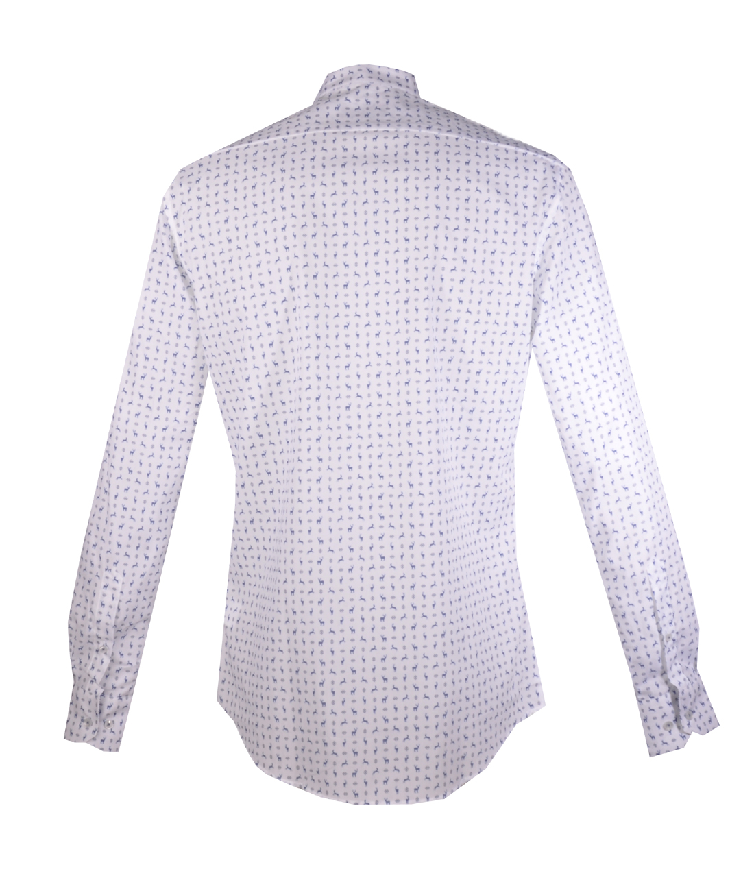 Elegantes Herrenhemd in weiß mit edlem Hirschmotiv in blau von Gloriette. Der Stehkragen... mehr