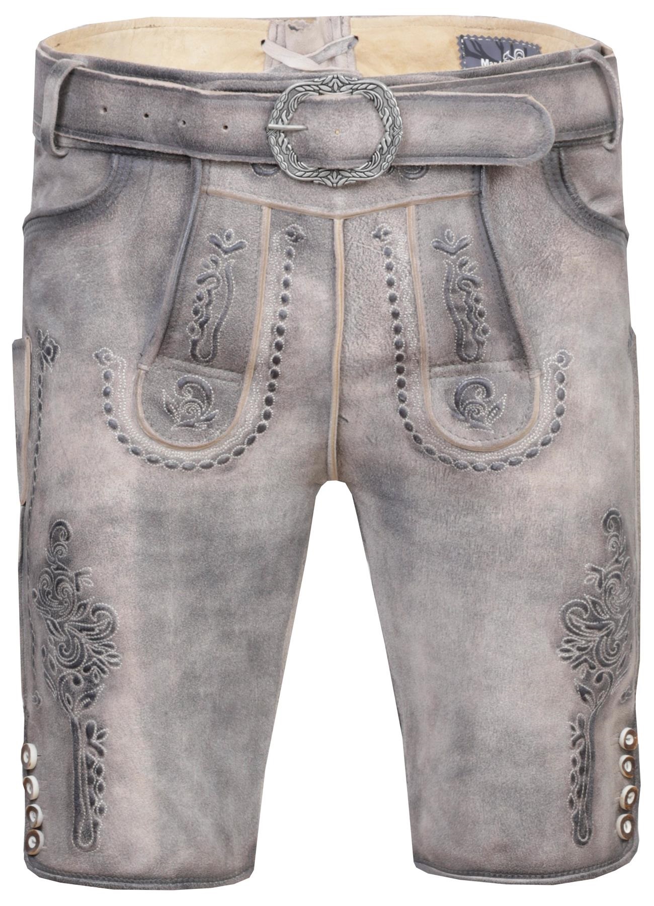 Weiterführende Links zu "Trachtenhose Lederhose kurz Benedikt granit grau mit Gürtel Marjo"