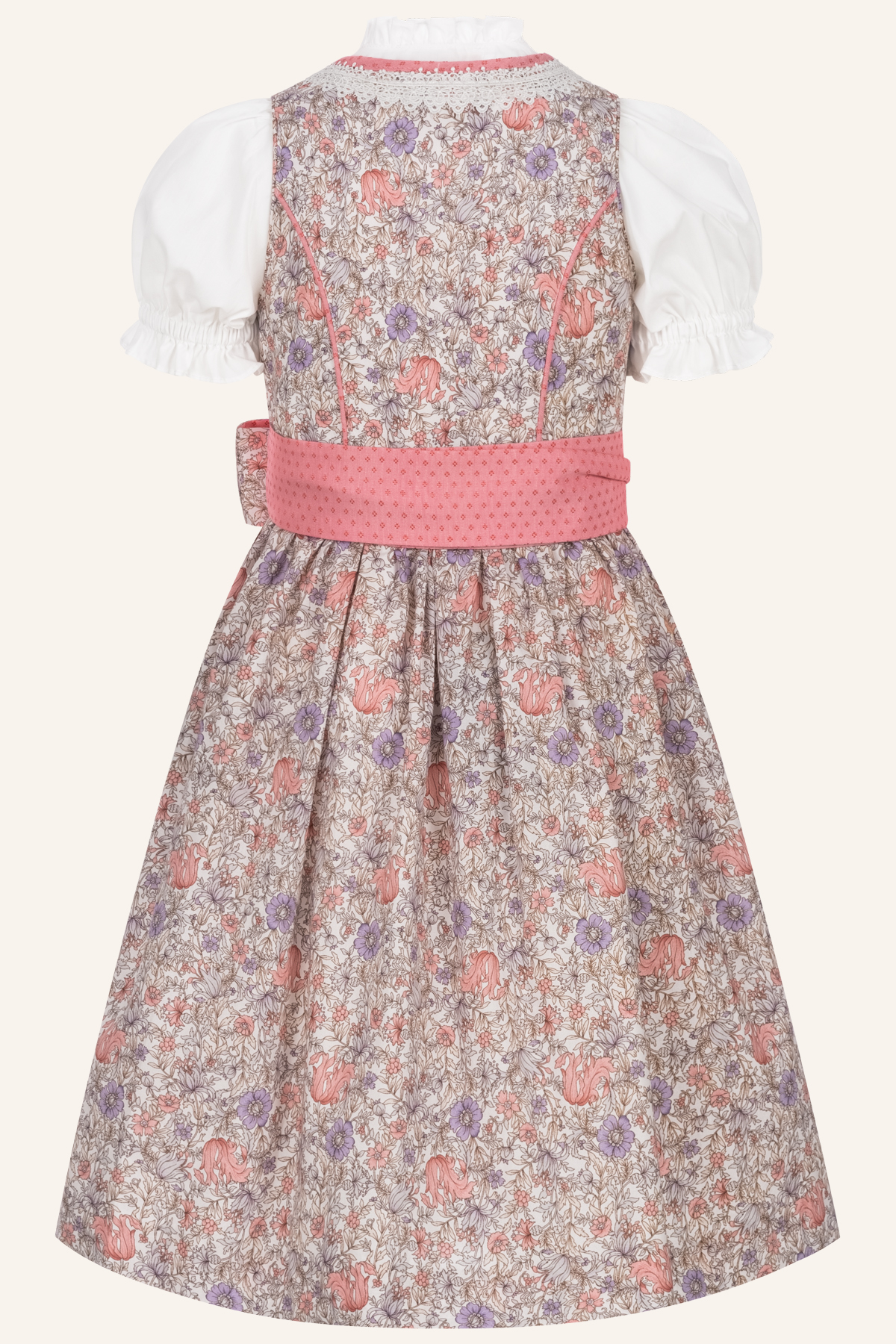 In Kürze: Kinderdirndl, Mädchen Dirndl, "Adarna", Farbe: rosa, Reißverschluss, Blumenmuster, Herz-Ausschnitt,